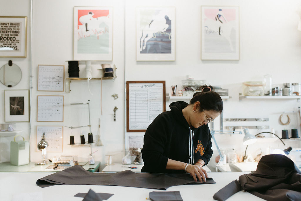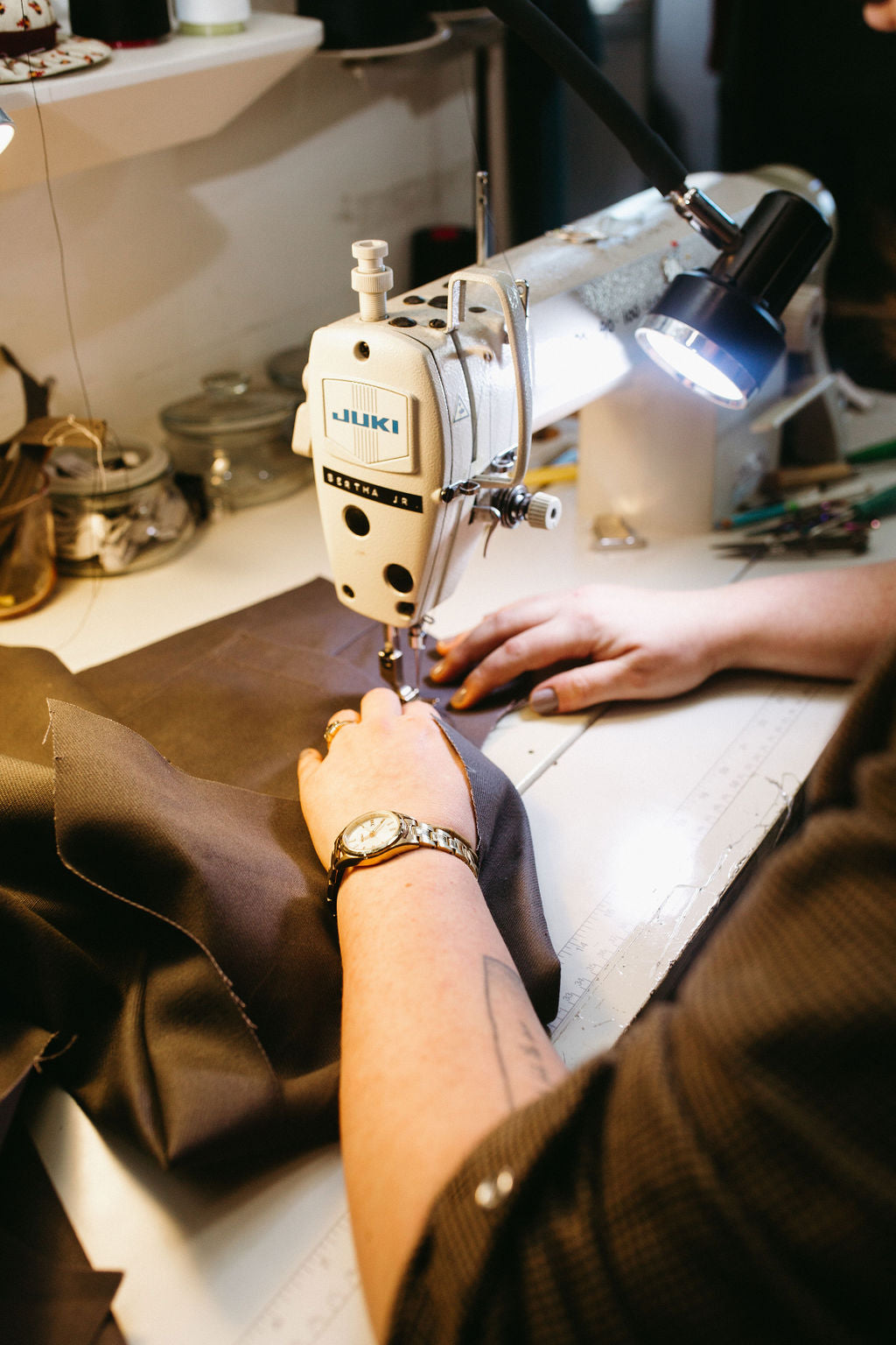 Your garment is proudly made, start to finish, in our studio in Chinatown by our talented team of craftspeople.